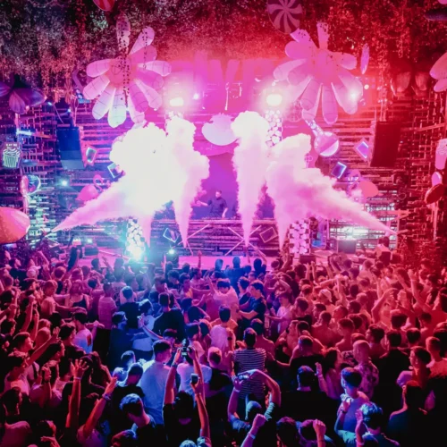 Situated directly on Zrće Beach, the club is surrounded by natural pine trees and offers beautiful sea views, creating a unique atmosphere where nature meets world-class nightlife. The venue features a huge open-air dance floor, multiple bars, lounge areas, Go-Go platforms and pools, giving visitors the perfect place to relax during the day and party under the stars at night.